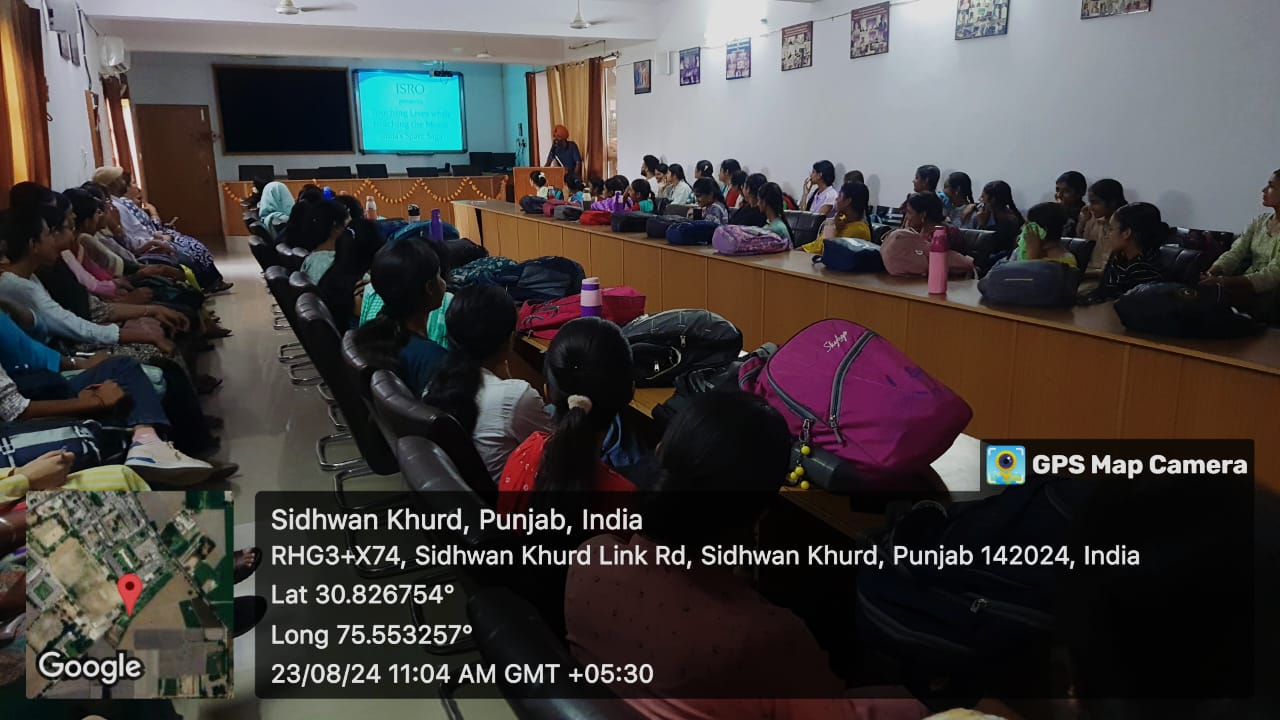 National Space Day was observed at the college campus. Live streaming of various events organised by Bharat Madapam, New Delhi under the theme 'Touching the Lives while touching the Moon' - India's Space Saga was shown to the students. Department of Science organised various  activities to convey the importance of the Day. Poster making Competition on the theme was held in which student participated with great enthusiasm.Head of the department Mr. Gagandeep Aulakh delivered a lecture to enlighten the students.