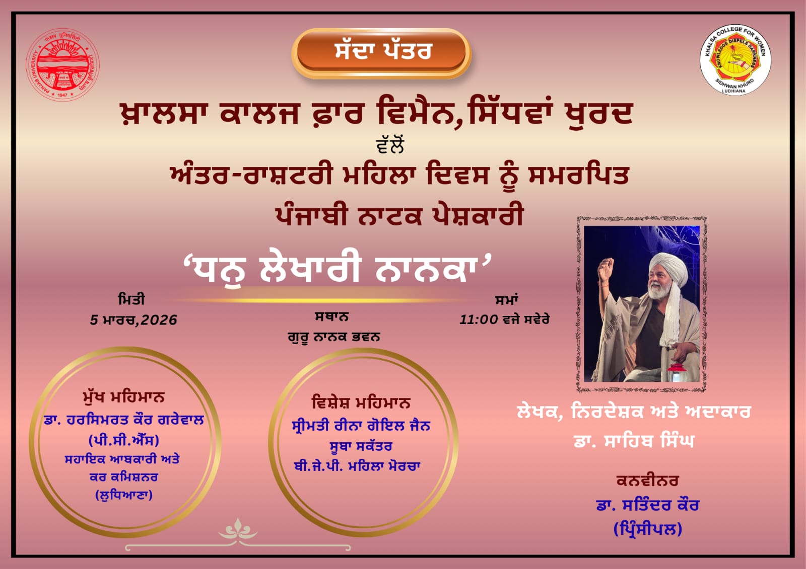 It is my pleasure to welcome you to Khalsa College for Women, Sidhwan Khurd. As the Principal of this illustrious institution, I am honored to lead a vibrant academic community dedicated to excellence in education. Khalsa College for Women was established to impart value based higher education for promoting education among rural women. Women empowerment and women education is the vision of Padam