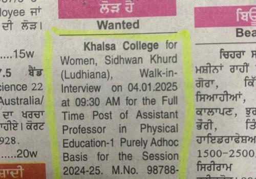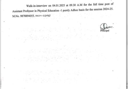 Walk-in interview for the post of Assistant Professor in Physical Education