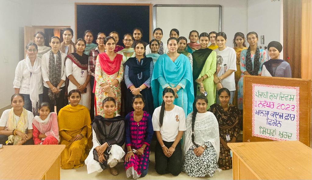 Punjab  State Day was celebrated at Khalsa College for Women, Sidhwan Khurd by PG Department of Punjabi under the able guidance of Principal ( Addl. Charge), Dr. Amandeep Kaur. Dr. Inderjit  Kaur, HOD of Punjabi Department enlightened the staff and students about the historical significance of the demand, struggle and formation of a separate Punjab State in 1966. Dr. Balwinder Kaur conducted a quiz on various aspects of the auspicious day. Students Sukhjit Kaur, Ramanpreet Kaur and Rajdeep Kaur expressed their views on contemporary conditions prevailing in the state, the status of Punjabi language and the importance of this landmark occasion through their poetical recitation and speeches. Dr. Amandeep Kaur addressed the audience and congratulated everyone on this historical day and said that we should revive our bond with Punjab, Punjabi, Punjabiyat and the rich Heritage of our land.Dr. Gagandeep Dharni, HOD, PG Department of English attended the event.46 students participated in the programme.