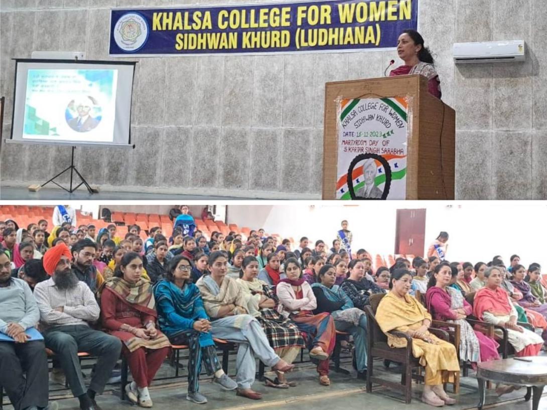 Khalsa College for Women, Sidhwan Khurd premier educational institution for women paid a tribute to Shaheed Kartar Singh Sarabha under the able guidance of the Principal Dr. Amandeep Kaur (Addl. Charge) by organizing a programme to mark the occasion on 16.11.2023 in which staff and students participated. Neelam,B.A.-III and Komalpreet Kaur B.A-II presented poems eulogizing the exceptional courage and sacrifice of the youngest martyr from Punjab. Manpreet Kaur, M.Com-II gave information about his life and ideology. Dr. Amandeep Kaur addressed the audience and acquainted all to the unique aspects of S. Kartar Singh Sarabha’s life and his unflinching determination at the tender age of 19 that served as an inspiration for future revolutionaries. A short video was shown to revive his memory. Dr. Gagandeep Dharni shared a brief biographical sketch of the martyr and presented the formal vote of thanks. Dr. Geetanjali Arora prepared the students for various items.