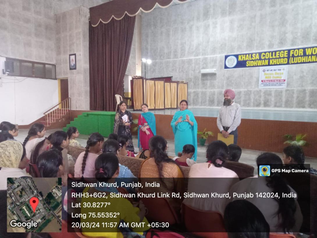 Under the able guidance of Dr. Amandeep Kaur Principal (Addl. Charge), the Career guidance and Counselling Cell of Khalsa College for Women, Sidhwan Khurd organized a lecture on ‘Career options’. Dr. Shally, Dr. Jagminder Kaur and Prof. Manpreet Kaur from GHG Harparkash College of Education were the resource persons and enlightened the students on various avenues available in myriad fields. Prof. Gagandeep Singh Aulakh HoD, Physics department gave information on NSDF courses that students can pursue simultaneously with their programmes.