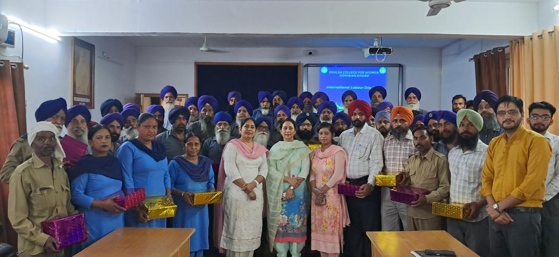 Under the able guidance of Dr. Amandeep Kaur, Principal (Addl. Charge), Transport Department of Khalsa College for Women, Sidhwan Khurd celebrated “ International Labour Day” on May 14, 2024. The bus drivers and conductors of college vehicles and Class IV employees of the college were felicitated with gifts and tea party was organized for them to mark the occasion. Dr. Amandeep Kaur praised the diligence of these employees in performing their duty. Students Garima B.Com I and Komalpreet Kaur B.A. II presented songs dedicated to the historical Day. Transport Committee incharges Prof. Ashwani Jain, Prof. Gagandeep Singh Aulakh, Transport Incharge S. Gurbakshish Singh and Office Superintendent Mrs. Baldev Kaur Mann also attended the programme.