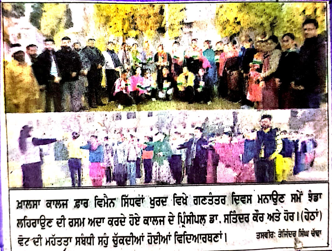 Under the aegis of Shri Guru Hargobind Ujagar Hari Trust, the students of Khalsa College for Women, Sidhwan Khurd, celebrated National Voter’s Day and Republic Day with enthusiasm and a sense of responsibility. The event was organized collaboratively by the NSS, Red Ribbon Club and the Department of Social Sciences on 25-01-25. As part of the celebrations and in the spirit of the upcoming Republic Day, the program began with the hoisting of the Indian flag by Madam Principal Dr. Satinder Kaur, accompanied by staff members and students. The flag hoisting was a proud moment that evoked feelings of unity and national pride, as the gathering sang the national anthem in unison. Following this, a pledge-taking ceremony, where students and faculty reaffirmed their commitment to voting responsibly and upholding democratic values. The pledge was collectively taken by all participants with great sincerity. Principal Dr. Satinder Kaur addressed the gathering, emphasized the importance of ethical conduct in all aspects of life and urged everyone to adhere to the principle of “accept no bribes, give no bribes.” She highlighted that integrity and fairness are essential for building a strong and honest society and encouraged students to actively promote these values in their communities. The event beautifully combined the essence of Republic Day and National Voter’s Day, inspiring students to actively uphold democratic values, moral ethics, and national pride. It concluded with a collective promise to contribute positively to the progress of the nation.