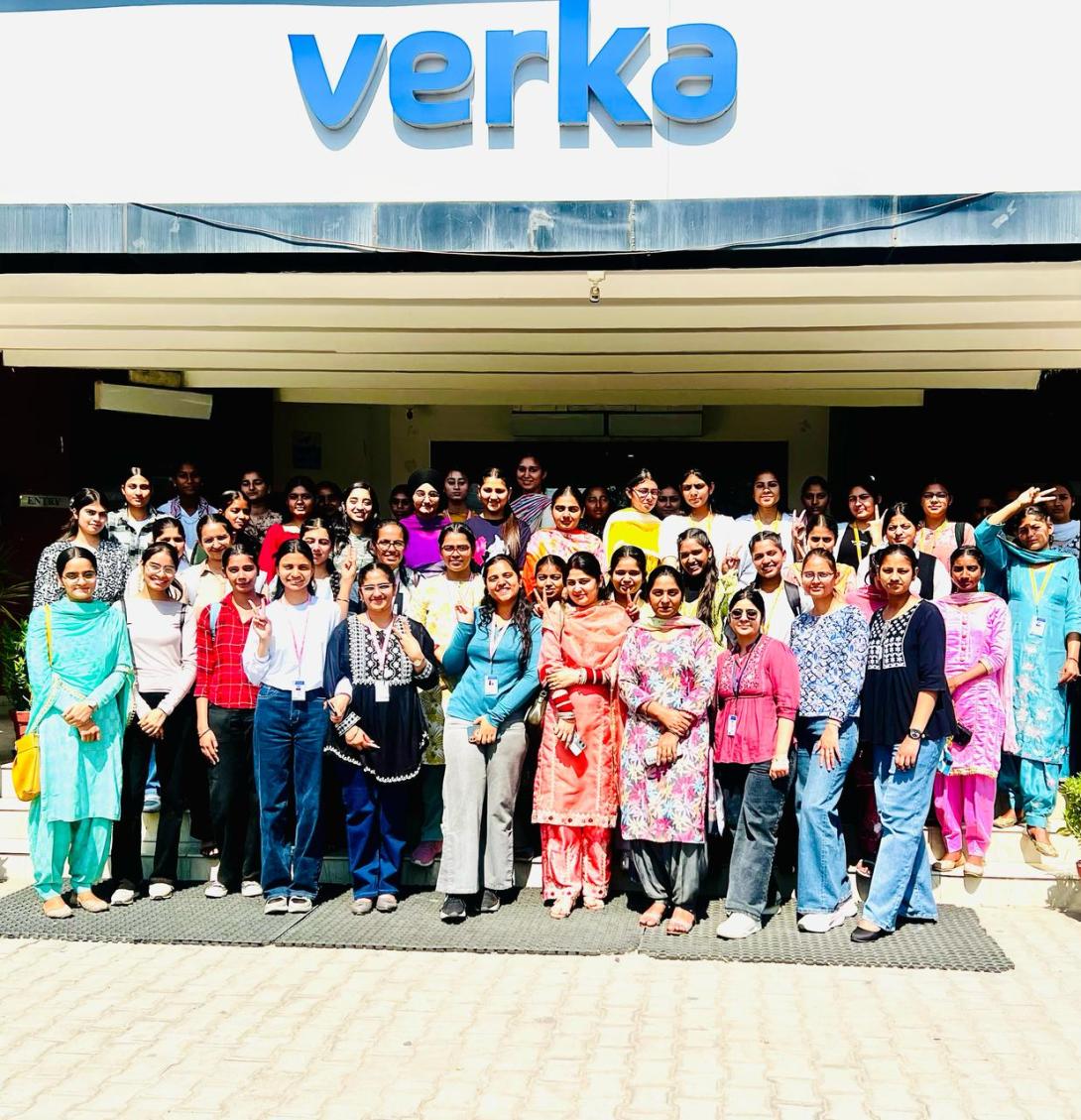 With the kind permission of Shri Guru Hargobind Ujagar Hari Trust Sidhwan Khurd and under the able guidance of Principal Dr.Satinder Kaurthe Commerce department of Khalsa College for Women Sidhwan Khurd organized an industrial visit on 19th March 2025 to Verka Milk Plant Ludhiana for 55 students of graduate and postgraduate classes. The main aim of the industrial visit is to provide exposure to students for practical knowledge of production and storage of milk. The Verka Plant staff provided information about process in interactive session. The staff discussed about pasteurisation of milk and storage in Silo and butter production and packaging. The whole process is done through various machines installed in the plant. Assistant Professor Mrs. Harjeet Kaur and Mrs. Harmanpreet Kaur accompanied the students. This visit proved beneficial to enhance the knowledge and develop entrepreneurship skills In the students.