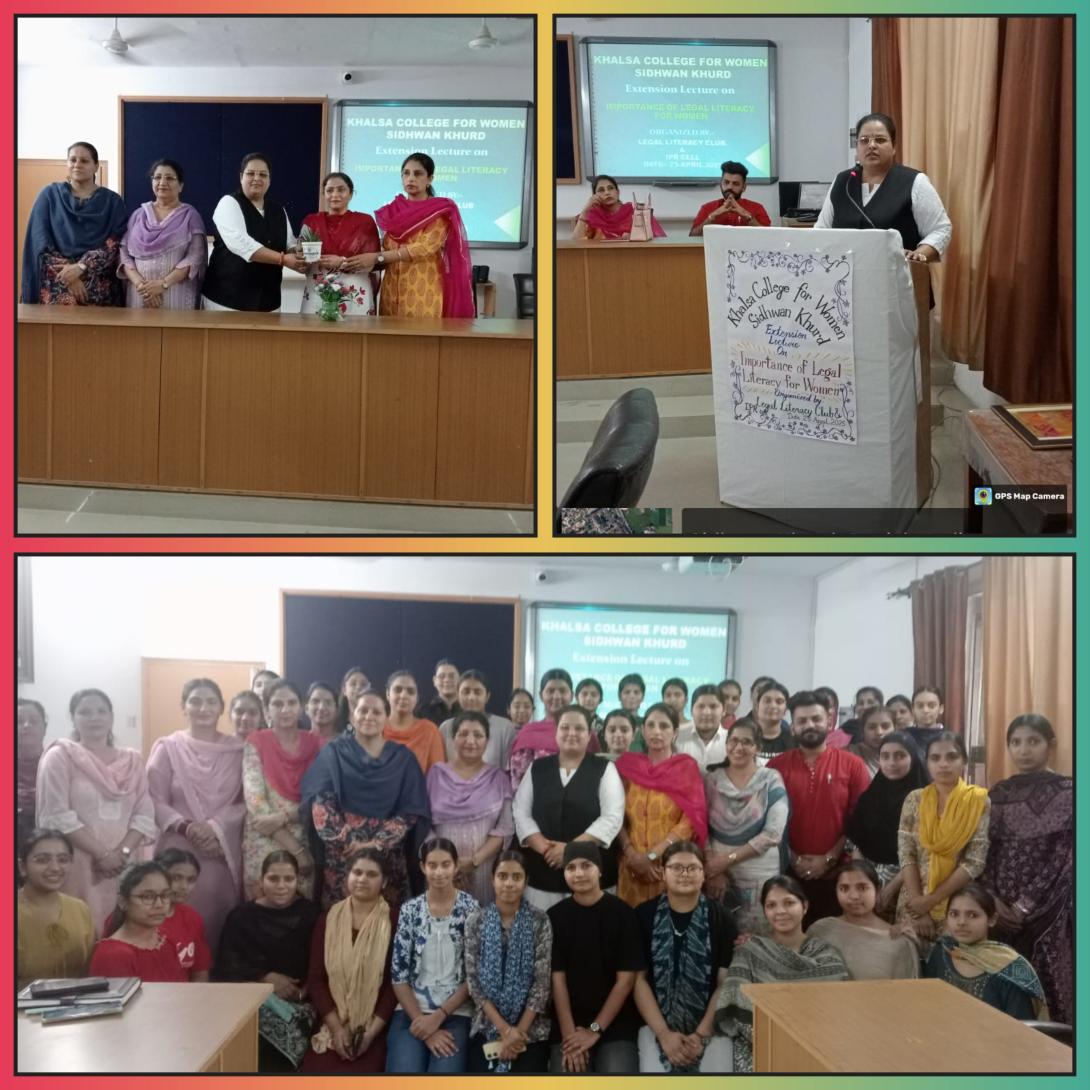 Under the aegis of SGHGU Hari Trust, Sidhwan Khurd and the able guidance of the College Principal Dr. Satinder Kaur, Legal Literacy Club and IPR cell organized Extension Lecture on Importance ofLegal Literacy for Women on April 25, 2025. This event was held as part of the college ongoing 75 years of excellence celebrations. Advocate Moon Jhanji, DirectorWomenCell Punjab(WPS) was the resource person.Dr. Satinder Kaur welcomed the guest and emphasized the significance of Legal rights in our society. Advocate Moon Jhanji awared the students about Legal literacy and how to empower women by equipping them with knowledge of their rights, legal procedures and how to access justice. This knowledge is crucial for women to protect themselves from various forms of injustice and to actively participate in shaping their lives. The stage was gracefully conducted by Prof. Ashish Kumar. Dr. Navdip Kaur, Vice Principal of the college proposed the formal vote of thanks. This event was collectively organized by Prof. Ashish Kumar & Prof. Harpreet Kaur (Legal Literacy Club) and Dr.Gagandeep Dharni & Prof. Hardeep Kaur (IPR Cell).The function was concluded successfully by presenting an award of honour to the resource person. 59 students attended the lecture.