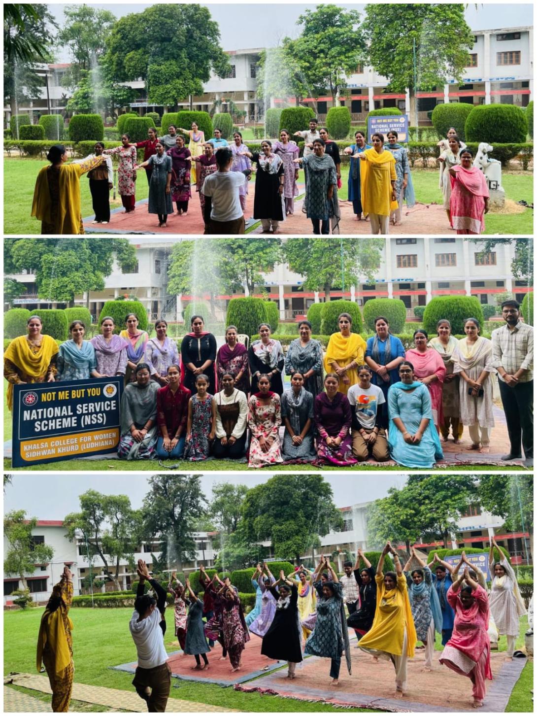 Under the aegis of Shri Guru Hargobind Ujagar Hari Trust and the able guidance of Principal Dr. Satinder Kaur, Khalsa College for Women, Sidhwan Khurd celebrated World Yoga Day on June 21, 2025 with great enthusiasm and dedication to promoting physical, mental and spiritual well-being. This year’s International Yoga Day was observed on the theme “Yoga for Self and Society”. The event was jointly organized by the NSS Units, NCC Wing and the Red Ribbon Club of the college. The celebration began with a Yoga Pledge to promote the significance of yoga in personal and societal well-being. Afterwards, all participants engaged in a Common Yoga Practice Session, performing various asanas, breathing techniques and meditation exercises .Principal Dr. Satinder Kaur addressed the gathering and lauded the spirit of participation. She emphasized the relevance of yoga in achieving a balanced, healthy and peaceful life. The activities were jointly coordinated by Dr. Inderjit Kaur and Dr. Amandeep Kaur (NSS Programme Officers), Dr. Balwinder Kaur (NCC Incharge) and Prof. Hardeep Kaur (Red Ribbon Club Incharge), who collectively encouraged students to adopt yoga as a way of life and a tool for holistic well-being. The event witnessed active participation from approximately 60 students and staff.