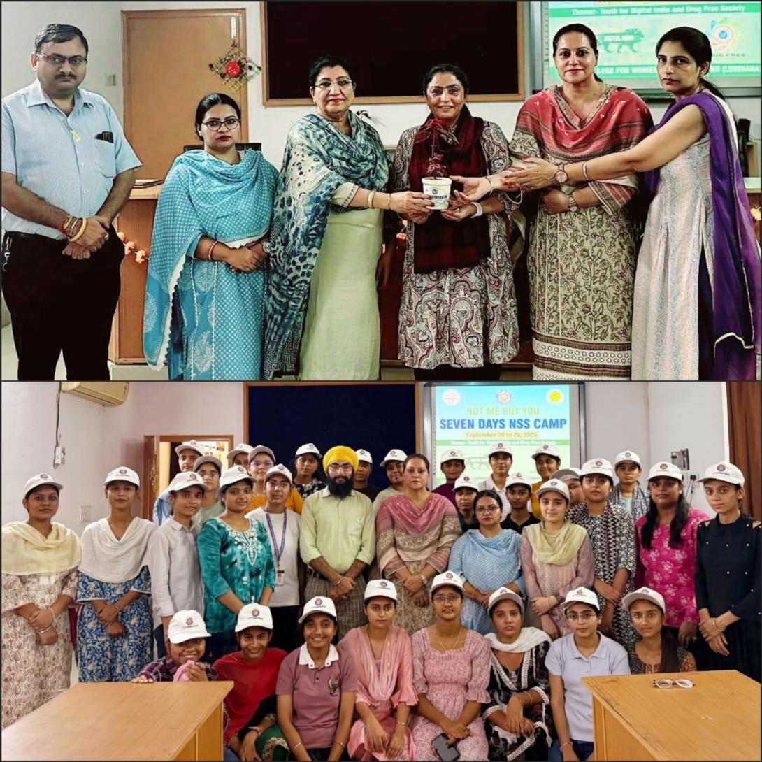 Under the aegis of Shri Guru Hargobind Ujagar Hari Trust and the able guidance of Principal Dr. Satinder Kaur, a seven-day NSS Special Camp on the theme “Youth for Digital India and Drug-Free Society” was inaugurated on September 20, 2025 at Khalsa College for Women, Sidhwan Khurd. The programme was commenced with the welcome of Principal Dr. Satinder Kaur by presenting a sapling as a symbol of growth and sustainability. The ceremony began with the soulful rendition of Deh Shiva Shabad, followed by the NSS clap and NSS song which infused the gathering with zeal and enthusiasm. NSS volunteer Harshdeep Kaur (B.Sc. B.Ed. II Medical) highlighted the importance of NSS, while NSS volunteer Ashnoor Kamboj (B.Sc. B.Ed. II Medical) gave a briefing on the theme of the camp. After the theme briefing, Ashnoor led the volunteers in taking the NSS pledge, reaffirming their dedication to selfless service and social responsibility. Principal Dr. Satinder Kaur emphasized the significance of observing the day as Bhai Ghanaiya Ji Martyrdom Day or Manavta Diwas. She urged the volunteers to imbibe the spirit of compassion, humanity and selfless service following the ideals of Bhai Ghanaiya Ji. She also stated that volunteers must come forward to spread awareness against the menace of drugs and should act as torchbearers of digital literacy to build a progressive society. Vice Principal Dr. Navdip Kaur also graced the occasion with her presence, adding to the solemnity of the event. The event was coordinated under the dedicated supervision of NSS Programme Officers Dr. Inderjit Kaur and Dr. Amandeep Kaur along with Prof. Gurjeet Singh who motivated the volunteers to contribute wholeheartedly throughout the camp. A total of 50 volunteers actively participated in the inauguration ceremony. The camp holds great importance as it not only provides students with opportunities for community service but also instills in them the values of discipline, leadership and social responsibility.