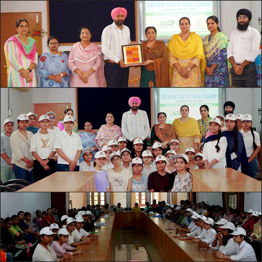 Under the aegis of Shri Guru Hargobind Ujagar Hari Trust and with the able guidance of Principal Dr. Satinder Kaur, the fourth day of the NSS Seven-Day Special Camp at Khalsa College for Women, Sidhwan Khurd was marked by an inspiring guest lecture held on September 23, 2025. The resource person for the day was Dr. Sandeep Kataria, Principal, GTB National College, Dakha. The resource person was warmly welcomed with a sapling as a token of respect and gratitude. A formal introduction and welcome address were presented by Principal Dr. Satinder Kaur, setting a graceful tone for the session. In his address, Dr. Kataria highlighted both the positive and negative impacts of digitalization, drawing attention to its relevance in today’s world. By sharing live examples from his personal experiences, he made the lecture highly engaging and relatable. He also shared the inspiring journey of Karoley Taxcous, highlighting his perseverance, dedication and never-give-up spirit that ultimately led to his Olympic achievements. Furthermore, he emphasized the role of youth in contributing positively to society, choosing the path of righteousness and working towards a drug-free society. The session concluded with a vote of thanks by Vice Principal Dr. Navdip Kaur. The stage proceedings were gracefully conducted by NSS Programme Officer Dr. Inderjit Kaur, while the arrangements for the lecture were efficiently coordinated by Programme Officer Dr. Amandeep Kaur and Prof. Gurjeet Singh. The lecture left a profound impact on the volunteers, encouraging them to adopt digital literacy wisely, contribute meaningfully to society and uphold the spirit of NSS.