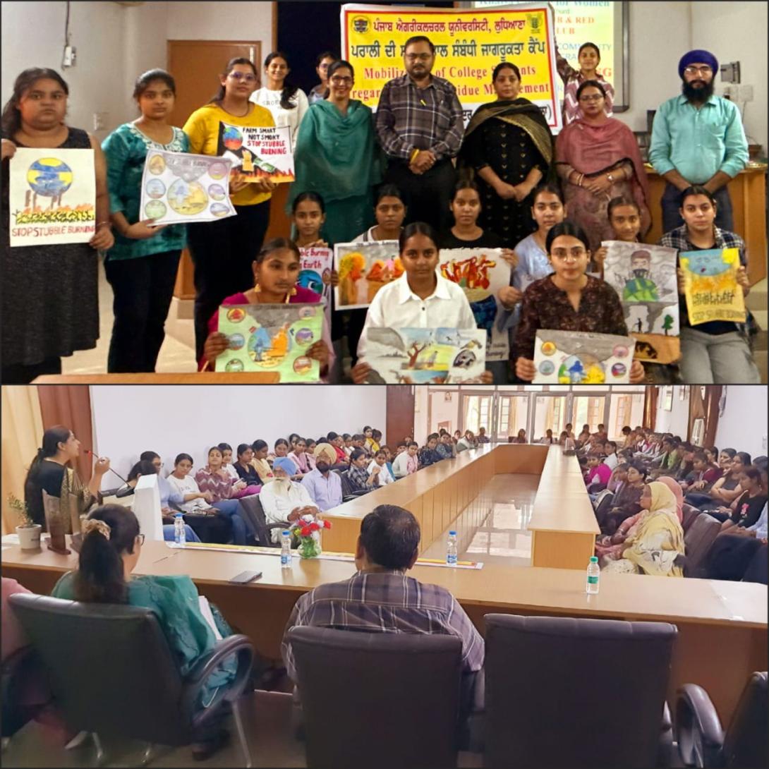 Under the aegis of Shri Guru Hargobind Ujagar Hari Trust and the able guidance of Principal Dr. Satinder Kaur, a one-day Workshop-cum-Community Outreach Programme was organized on 30-10-2025 by Khalsa College for Women, Sidhwan Khurd in collaboration with PAU–Krishi Vigyan Kendra, Ludhiana (Samrala) on the topic “Stubble Burning.” The event was jointly conducted by the NSS Unit, Eco Club and Red Ribbon Club of the college. The workshop commenced with a warm welcome extended to the Chief Guest and Resource Person, Dr. Parvinder Kaur, Assistant Professor of Home Science from KVK, Samrala by Dr. Puneet Wadhwa, Head of the Department of Computer Science. Dr. Parvinder Kaur was honoured with a sapling as a token of respect. In her enlightening address, Dr. Parvinder Kaur highlighted the harmful consequences of stubble burning and discussed eco-friendly alternatives for paddy residue management. She emphasized its detrimental effects on soil fertility, air quality and human health, urging farmers, students and citizens to work collectively for environmental preservation. Referring to the sacred verse “Pawan Guru, Paani Pita, Mata Dharat Mahat” from Sri Guru Granth Sahib Ji, she beautifully connected the importance of nature with spiritual and moral responsibility, inspiring the audience to protect the environment as a divine duty. Students actively interacted with the resource person and asked relevant queries, making the session engaging and fruitful. Members of the Gram Panchayat from Village Sidhwan Khurd, S. Balwinder Singh, S. Gurcharan Singh, Mrs. Amarjeet Kaur and Mrs. Davinder Kaur also participated in the session reflecting strong community involvement. To further reinforce awareness, the college organized a Poster Making Competition on the theme “Stubble Burning.” Harshdeep Kaur (B.Sc. B.Ed II) secured the first position, Krishma Kaur (B.Sc. B.Ed II) bagged second position and Jashanpreet Kaur (B.Sc. B.Ed II) got third position. The winners were honoured with certificates and prizes sponsored by KVK. As part of the ongoing Red Ribbon Week (October 23 to 31), the Red Ribbon Club organized a Slogan Writing Competition on the theme “Drug Abuse and Social Awareness.” Jashanpreet Kaur (B.Sc. B.Ed II) won first prize, Nisha (B.Sc. B.Ed II) bagged the second position, Muskan Gaba (B.Sc. B.Ed II) secured the third and Krishma Kaur (B.Sc. B.Ed II) received a consolation prize. The winners were awarded by the present guests and felicitated with trophies for their creative contributions. The resource person was honoured with a memento as a token of gratitude. Principal Dr. Satinder Kaur appreciated the efforts of the organizing team and motivated the students to become environmentally responsible citizens and agents of social change. The stage proceedings were conducted by Prof. Gurjeet Singh and the vote of thanks was proposed by Prof. Hardeep Kaur. The event was efficiently coordinated and organized by NSS Programme Officers Dr. Inderjit Kaur and Dr. Amandeep Kaur. A total of 125 students actively participated in the workshop. The programme proved to be highly enriching and impactful, sensitizing both students and community members about the environmental, social and health significance of curbing stubble burning and promoting sustainable agricultural practices.